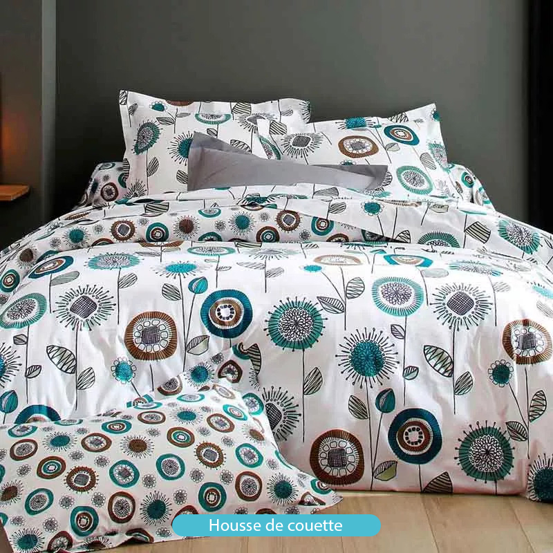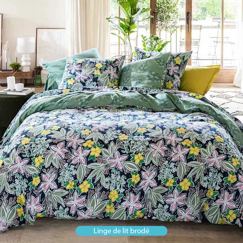Linge de lit percale motif végétal - BECQUET CRÉATION