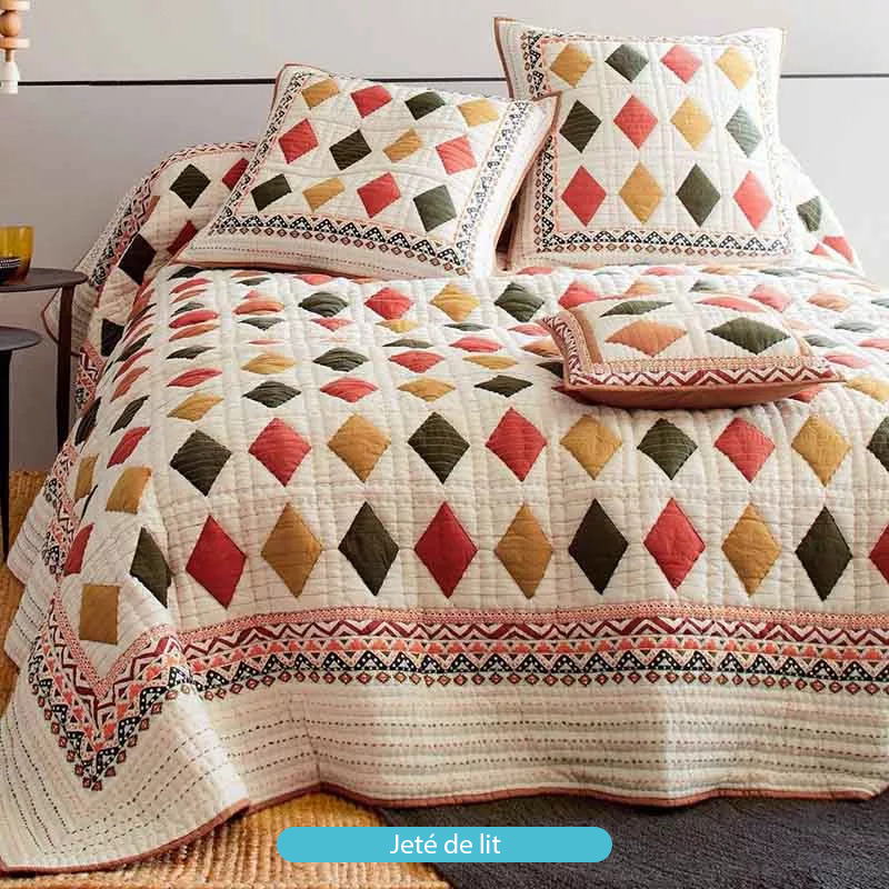 Linge de lit motif rosaces - BECQUET CRÉATION